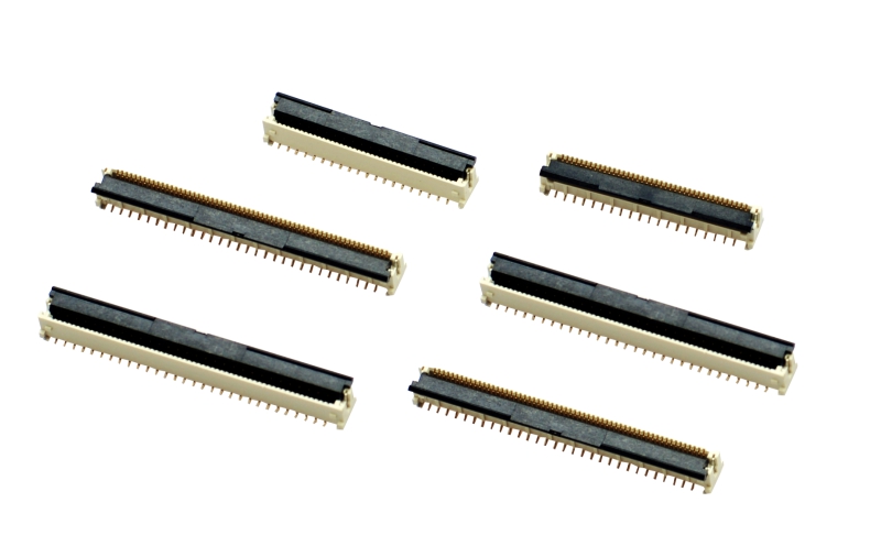◆ 該系列產(chǎn)品高度4.6mm,厚度4.2mm,間距為0.5mm的緊湊超強度設計,采用ZIF方式,帶鎖條立貼。端子引腳采用Z字形排列,                                                        配備有正腳位與反腳位。